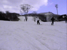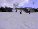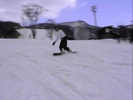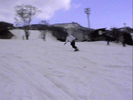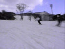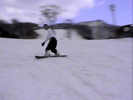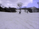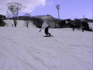 | バックサイド側で斜滑降している状態から後足をスライドさせていき(後足に荷重をかけて押していく感じ)ボードを縦にして直滑降状態までもってくる。 このときかかと側にかかっていた荷重を徐々にボードの中心に持ってくる感じにね。 ボードが縦方向になったら少し腰を落しながらつま先側のエッジを立てていき後足に力をかけてテール側を徐々にヒールサイド側にスライドさせて いきます。ボードが斜滑降の状態までもっていったら両手でバランスをとってボードの位置を調整しよう。これでターンは完成だよ。 ポイントは目線を行きたい方向にもっていき、肩、腰、足といった順で回転させていくのがスムーズをターンのポイントです。はじめは大きいターンで 練習していき徐々に小さくターンできるように練習していくといいよ。 |