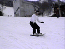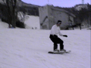 | まず谷側を向いてボードを水平にしてかかと側のエッジを立てて立ちます。その状態から徐々につま先側を下げていくとボードがフラットになり滑りはじめ ます。このとき体重は両足均等にかけ、どっちかの足にかたよってるとその方向にボードが流れていってしますので腰を落として均等にね。 止まり方はかかと側のエッジに荷重を移していくとボードは止まります。そのときも荷重は両足均等にかけ腰を落として安定させます。 |