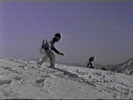 | 【メイク】 進行方向が一瞬見えなくなり踏み切るタイミングつかみにくいので最初はトゥーサイドのエッジングを意識するつもりで踏み切ろう。 あとはスピンが止まらないように上体をリードしつづけることができれば自然と最後まで回しきれるよ。このときグラブを入れていくと体がひきつけられる ため安定してきれいにメイクできるようになる。そのほうがカッコいいしね。 ブラインドとなるため視線は早めにランディングポイントを確認して着地に備えよう。 |