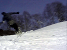 | 【メイク】 大切なのが上体のリードで踏み切る前に胸を大きくひらいてアプローチしよう。 ボードが雪面を離れるのが感じたらボードをヒール側に抜く感じで回しはじめ、そこからスピンが止まらないように上体をリードしつづけることにより 視線を先行し最後までメイクできるようになるよ。 |