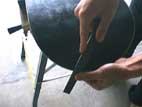 はじめは軽く目の粗いファイルで削ります、ある程度削れたら次に目の細かい仕上げ用のファイルで削る。 |
