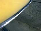 リペア材が冷え固まったら長めのファイルかメタルスクレーパーで少しづつ削っていきます。 |