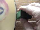 リペア材をキズに埋めていく |