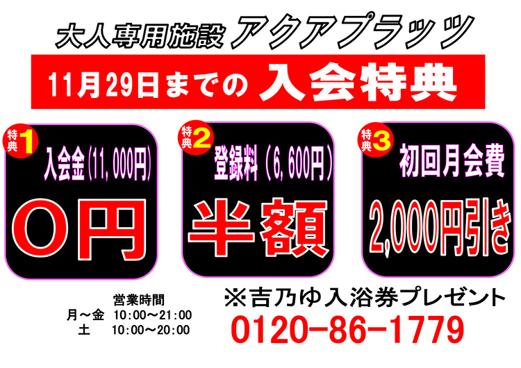 ●アクアプラッツ「11月29日までの入会特典」をダウンロード