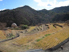 私たちが行ったときは冬だったので、田んぼは稲が刈り取られていて、水も張っていませんでした。また、あぜ道も立入禁止で入れませんでした。