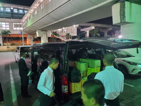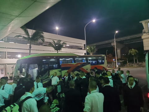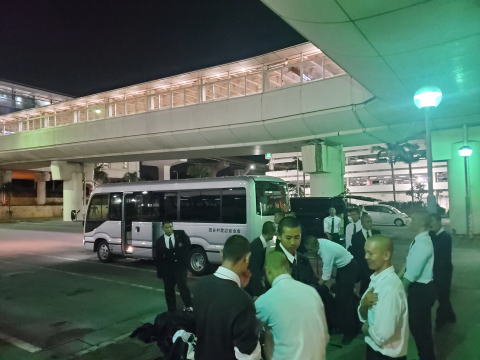 マイクロバスと観光バスでホテルへ向かいます。 |