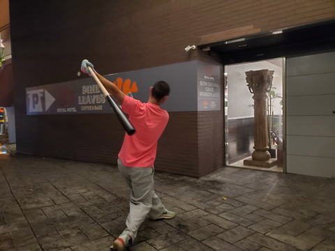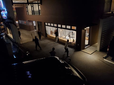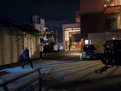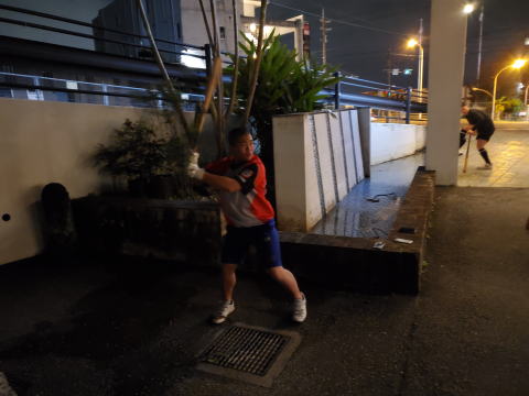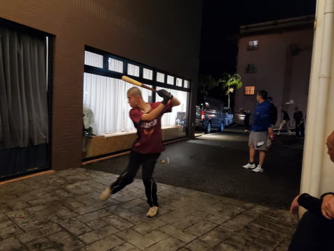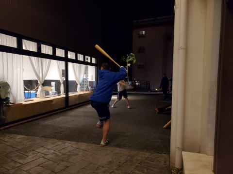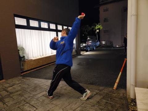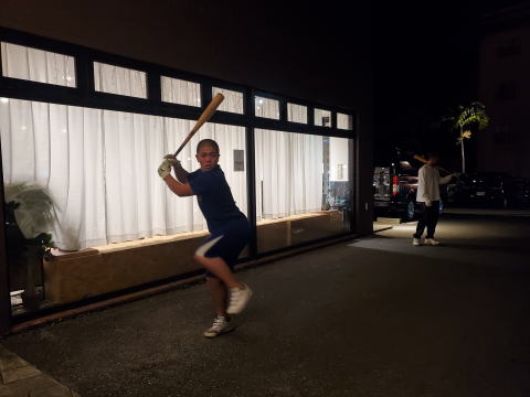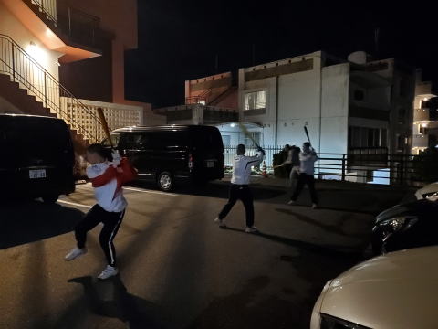 12月24日【キャンプ初日】 朝6時、ホテル前で自主トレのバットスイング。 |