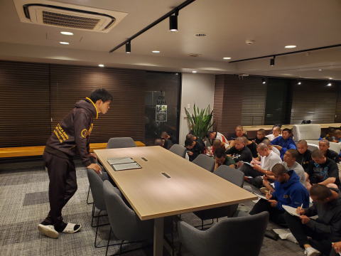 ゲーム前に大久保氏に指導いただく内田選手。 |