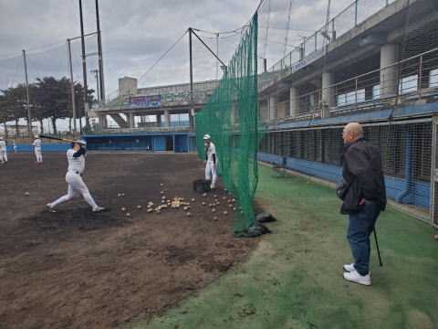 プロ野球・大洋ホエールズで活躍され、長年ベイスターズでスカウトをされていた大久保弘司氏が指導にお越しくださいました。 |