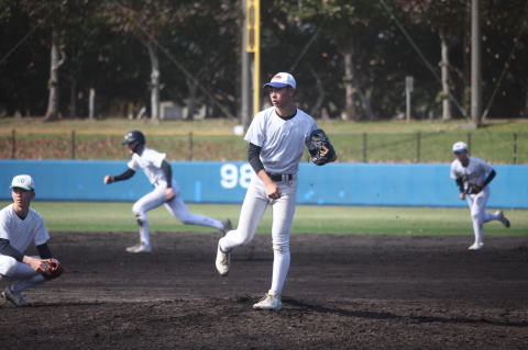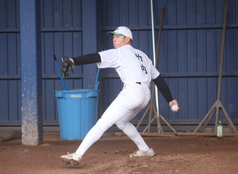 成長著しい2年生の竹内投手が、力のあるストレートを投げ込む。 |