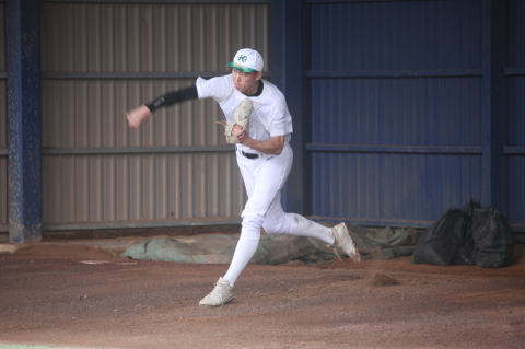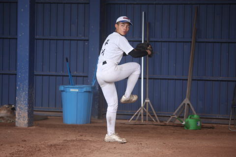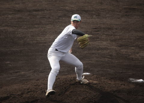 1年生左腕の平川投手が低めに速球を投げ込む。 |