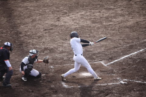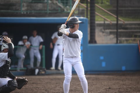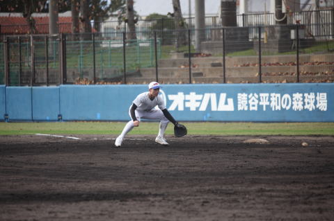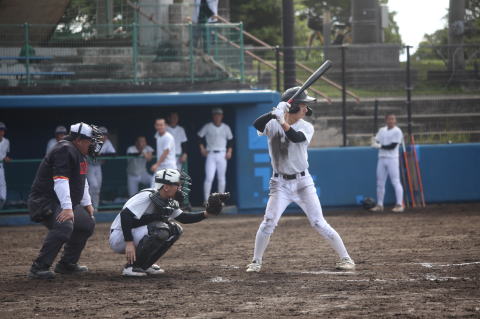 右のエース、村上投手がキレのいい変化球を投げ込む。 |