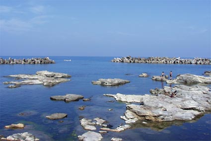 水中は藻場あり、砂地あり、岩場ありで、生物相も多様。