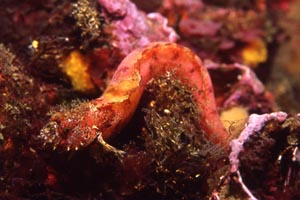 GWです。 5月に入ってやっと水温も上がってきました。 天気も良くあったかく、まさにダイビング日和です。 最初にコオリカジカの仲間と思われるカジカの抱卵を見に行きました。 頭にオレンジ色の入ったきれいなカジカです。 卵は発眼しており孵化も近そうです。 沖に進むとアキギンポ発見。ピンク色したかわいい奴です。 エビカニの多い石浜ですがまたまた見なれないカニ(イボトゲガニらしい)がいました。 セトカジカはおなかが大きくもうすぐ産卵しそうです。 ダンゴウオの抱卵も見られたけど穴の中なんで写真はダメでした。 今回はナイトもやりました。 なんと今世紀初、96年以来のナイトです。 昼間とは違ってあちこちで海サボテンが顔を出してたり、妙にメバルが多かったり。 エゾイソアイナメやイソバテングも見られました。 なんか、甲冑魚みたいな奴がいまして、サブロウという魚でした。 ジンドウイカの産卵に出くわしました。 以前に卵を産んだ同じ場所に足していくんですね。 ひさしぶりのナイトだったけどメチャンコおもしろかった。 これからも機会があればやりたいですね。 |