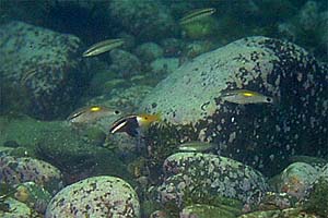 宮城県は女川で潜ってきました。 朝9時、石巻集合ということで5時過ぎには出発したのだが 3時間もかからず着いてしまった。 しかし潜るために5時起きなんて、東京時代、伊豆に行ってた頃を思い出します。 さて海ですけどここにはアイナメがいました! なぜかほっとしてしまう私です。 リュウグウハゼが大きくそして多い。 庄内でもいつもいるタナゴだけどたくさん群れている。 タナゴの大群なんて始めてなんでちょっとショック。 ほかに見られた魚は ナメフウセン インドヒメジとコバンヒメジ キヌバリ(太平洋なのに7本縞なのだ) ヨロイメバル イワシの大群 ホタテの稚貝 マダコの抱卵、などなど… 太平洋らしくホヤやバフンウニも多くエビやヤドカリもたくさんいました。 ところで女川といえば話題のクチバシカジカなんだけど…いなかった。 ここ数日見られてないらしい。 冬になると多くなるらしいんで次回に期待です! |