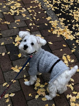 銀杏並木のレンガ道は黄葉したズボン型や扇型