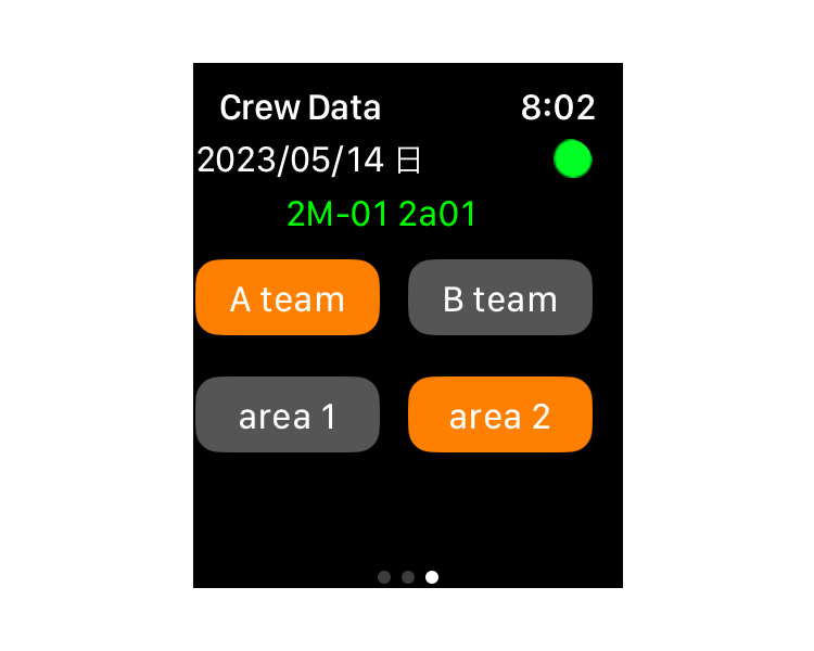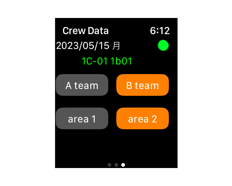 Team and area change 01 ①A Team button ②B Team button ③area 1 button ④area 2 button ⑤Member information The orange button is the state of the iPhone. |