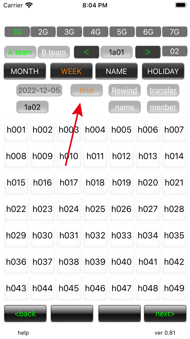 Edit Job Search 02 In 'WEEK' mode, press 'find' to bring up the search screen. Since you are searching for weekdays, 1-49 in the 'WK' column will appear on the search screen. |