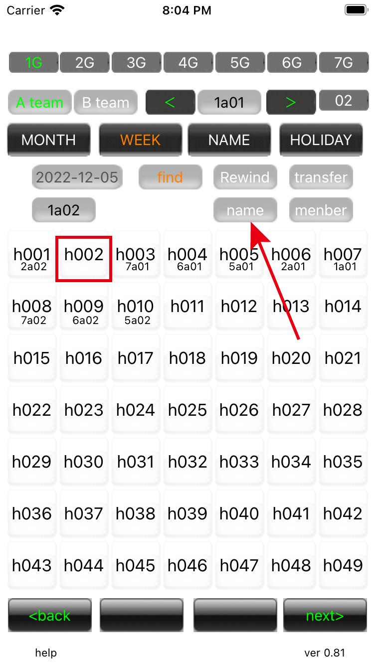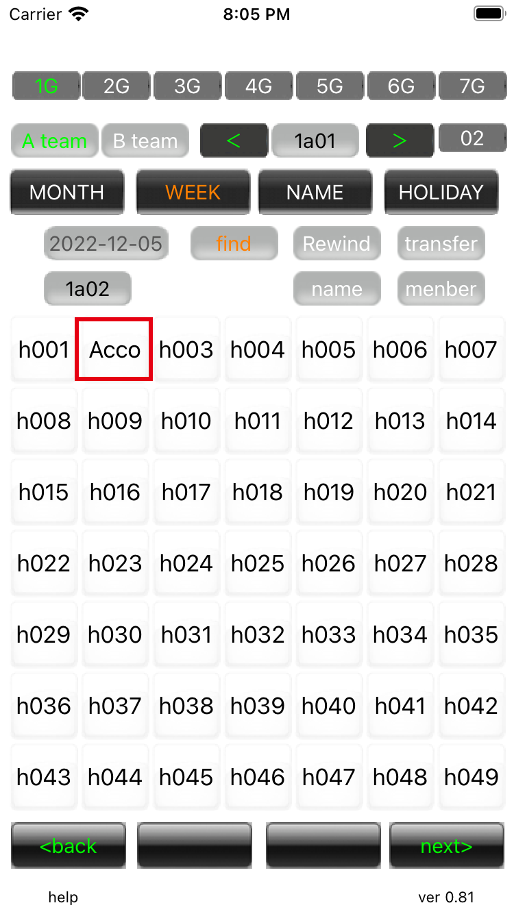 Edit Job Search 03 If you press 'name', the name of the person in charge of each task will be displayed. The reason why 'h002' is blank is that the business name was changed to 'Acco' when editing the business. |