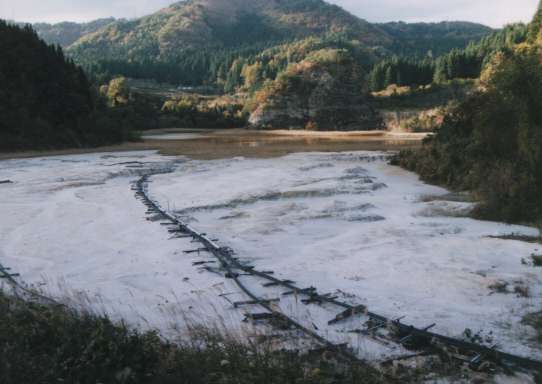 真ん中に伸びているのは中和剤をそそぐためのパイプです。中和処理の大変な苦労が 伺われます。