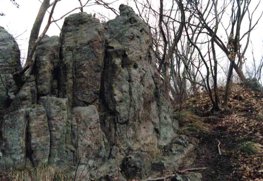 この尾根道は10分程続きますが頂上までの途中には岩塊が存在しています。