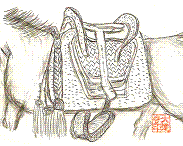 鐙の下に着る装束にも成るという乗馬の一頭も、根気の有る若衆の鑓持の