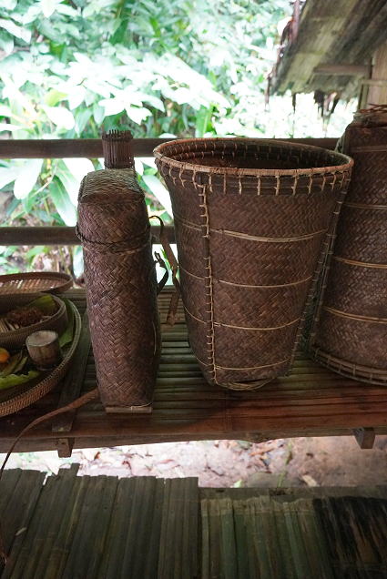 ドゥスン族3 ドゥスン族は陸稲中心の米を作っている、 したがって主食は米。 又、その米から地酒造が盛ん。 家の中には地酒が並ぶ・・・ |