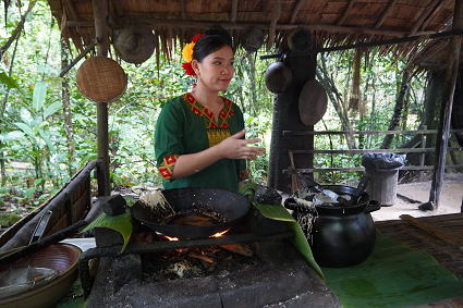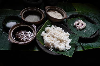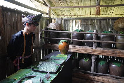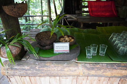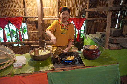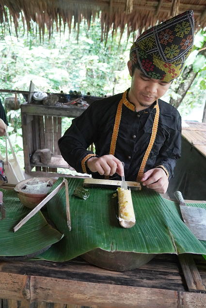 ドゥスン族4 ドゥスン族は地酒もさることながら、お料理も得意。 屋外には竹筒ごはん、地酒、ハチミツの 試食、試飲のコーナーが・・・ 竹筒のかやくご飯、ワインライス、ハチミツ、 御馳走様、どれもとてもおいしかった。 |