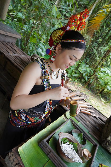 ドゥスン族 サバ州に住む農耕民族。 竹で作った家に住んでいる。 生業は焼き畑農業を中心にしている。 |
