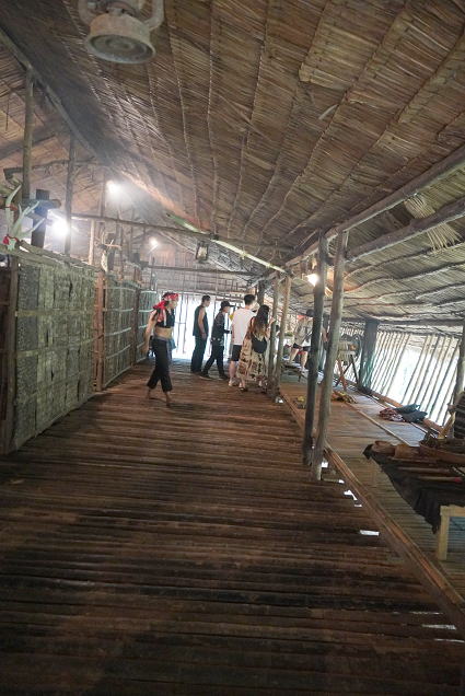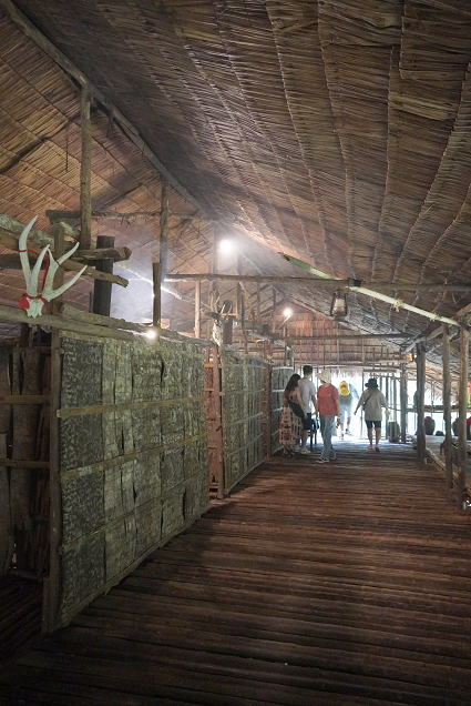 ルングス族1 ルングス族はサバ州の森にすみ、陸畑農業を中心に生活している。 家はロングハウスで森の木で造られている。 幅は狭く奥に長く続いていて、それぞれのファミリー部屋と みんなが過ごす廊下の二つの空間からなっている。 |
