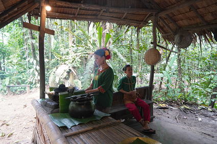ドゥスン族2 ドウスン族は竹の家に住み、 竹の手工芸品を副業としている。 農業用から生活用品まで竹製品を作る。 民族楽器はインドネシアのガムランに近い。 |