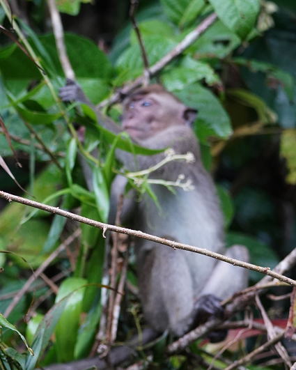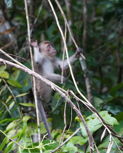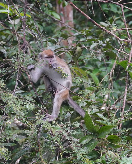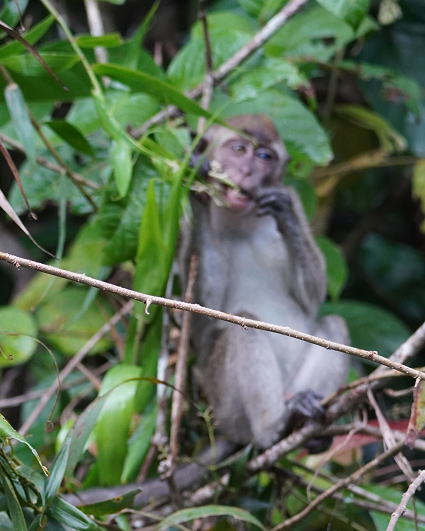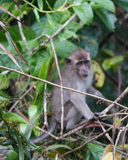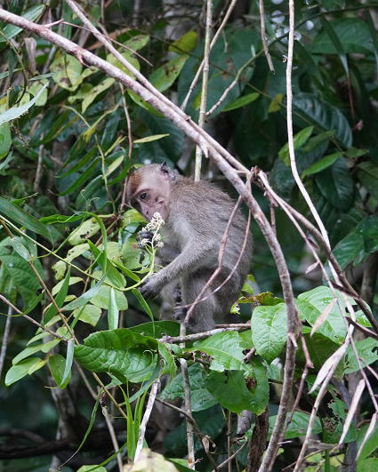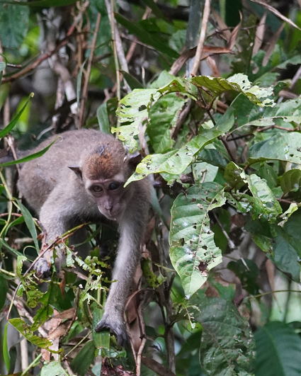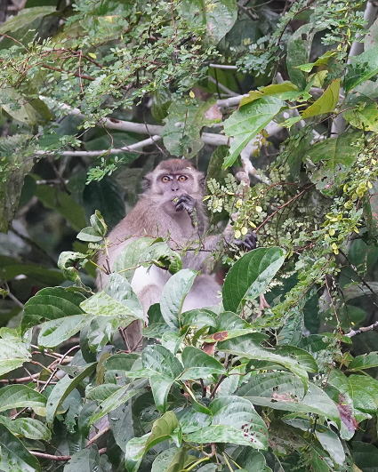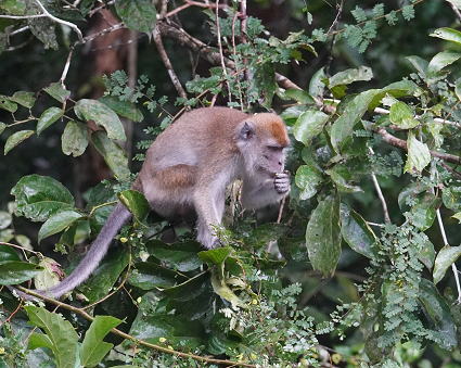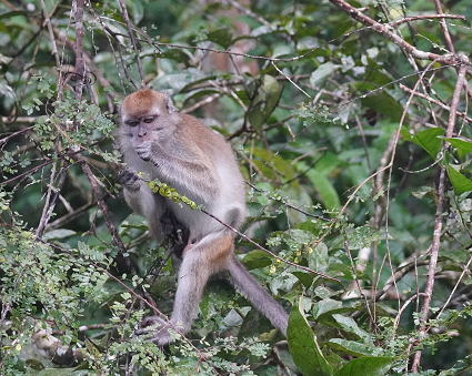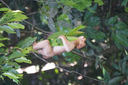 | カニクイザル5 今回はカニクイザルとブタオザルの2種類がよく見られた。 クリアス川ではカニクイザルが、 タビンではブタオザルに囲まれて過ごした。 |