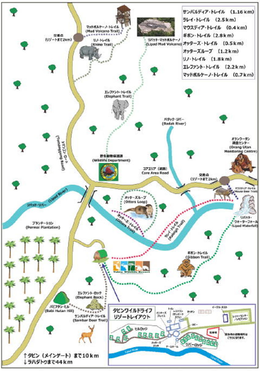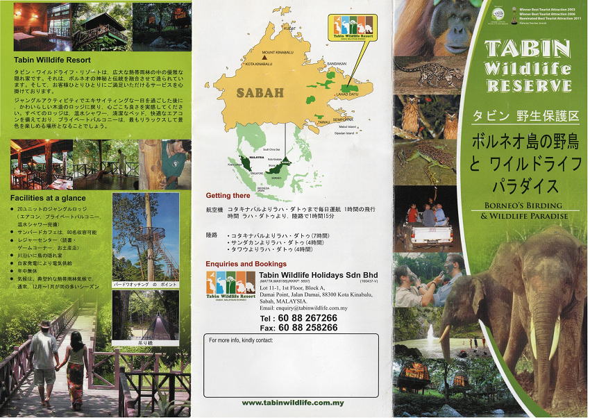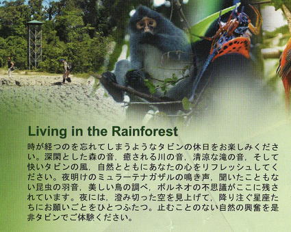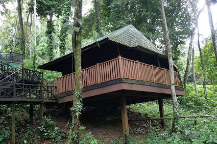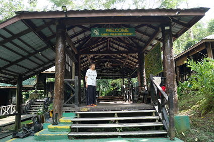 | タビンワイルドライフリゾート 早朝ボートクルーズから戻り、朝食。 ボルネオネイチャーロッジからタビンに移動。 陸路で約2時間半、ラハダツに到着。 ここで、入村手続きをして更に90分。 タビンワイルドライフリゾートに到着。 |