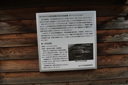 | 阿佐美縄文式文化住居跡 阿佐美遺跡は約3,800〜3,200年前の縄文式中期後半〜 後期前半の集落跡で、昭和29年(1954)の東武線阿左美駅構内の拡張工事の際、 沢山の土器や石器が出土した。 翌年、群馬大学の発掘調査で2棟の住居跡が発見された。 2号住居跡は敷石住居と呼ばれるもので、中央には囲炉裏が作られていた。 |