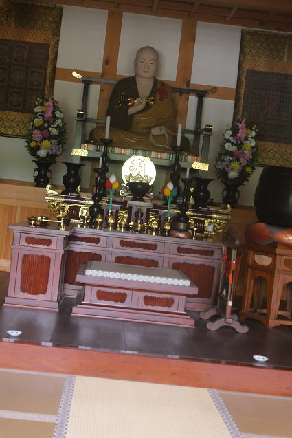 | 南光寺3 境内には石造物が多く、弁財天をはじめ七福神が揃う。 石宝塔や六地蔵幢が並ぶ。 新しく大師堂も建立され、弘法大師像が安置されている。 本堂前には仁王像が立つ。 |