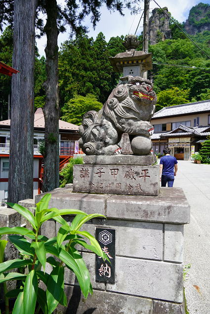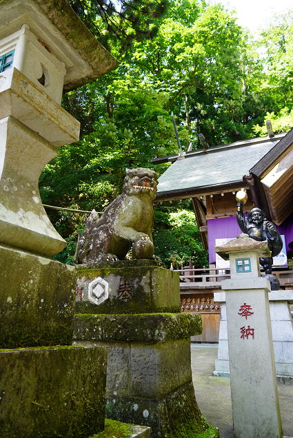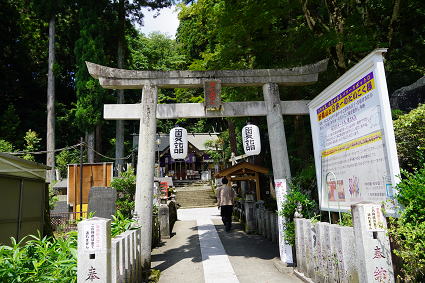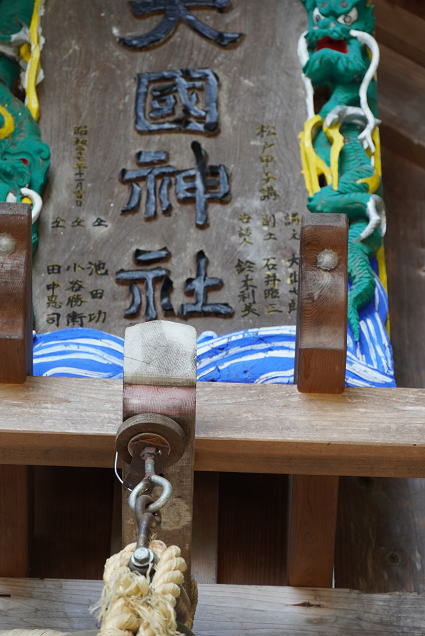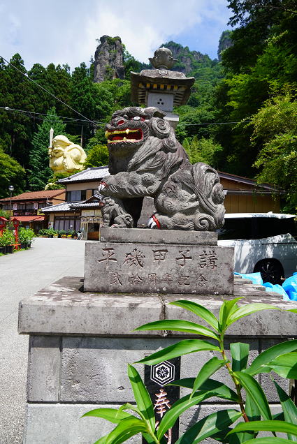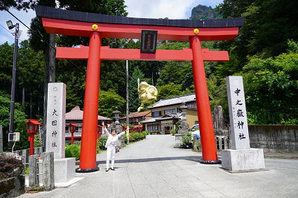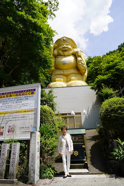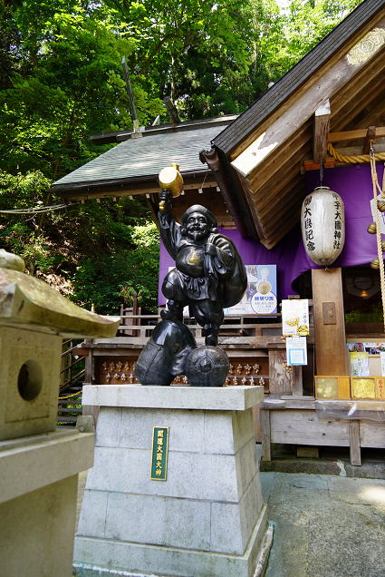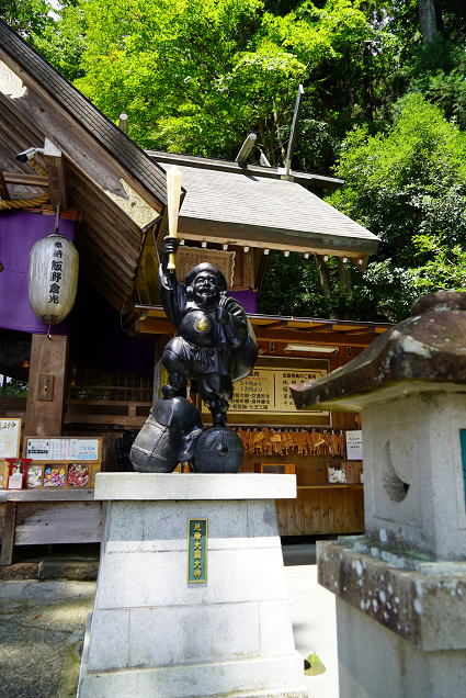 | 中之嶽神社2(甲子大黒神社) 甲子大国神社は大国主命ほかを祀る。 大黒様は普通小槌を持っているが、ここの大黒様は剣を持っている。 20mにもなる大きな大黒様が鎮座している。 創建は弘仁9年(819)、藤原冬嗣卿と弘法大師が登嶽し、奉斎したという。 |