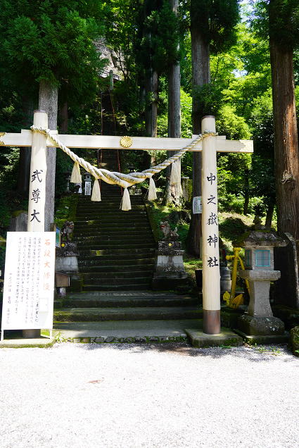| 中之嶽神社3 中之嶽神社は妙義山の南麓に鎮座する轟岩を神体とする巨岩信仰の神社。 轟岩に隣接して建立されており、本殿を持たない。 急な階段で145段の上にあり、境内からは豊かな景色を望むことが出来る。 祭神は日本武尊ほか16社を祀る。 |