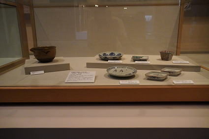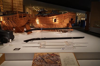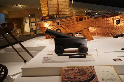 | 名護屋城博物館3 このコーナーは1592年から7年間にわたって行われた豊臣秀吉による 朝鮮侵略(文禄慶長の役)をテーマとしています。 当時使っていた船の復元模型をはじめ、 当時の焼き物などが紹介されている。 |