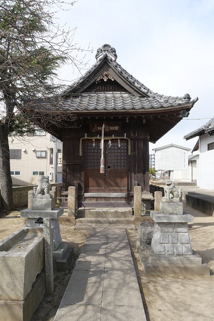 | 雷電神社(中) 中世の幸手は田宮庄といい、その中心がこの神社で、 幸手では最も古い神社の一つ。 田の中に金色の雷伸が落ち、これを祀り、田の中の宮としました。 日本武尊の伝説も残されている。 |