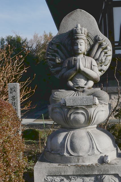 長泉寺4(十二支守本尊) 閑話休題、長泉寺には多くの仏様がおいでになる。 境内には十二支守本尊の石仏が揃う。 千手観音・子、虚空蔵・丑、寅、文殊・卯、普賢・辰、巳、 勢至・午、大日・羊、申、不動明王・酉、阿弥陀・戌,亥 。 |