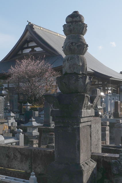 長泉寺2 今泉氏は横田氏の代わり上三川城主となり、 上州へ出兵、那須氏や上杉謙信、武田勝頼などと戦った武将。 最後は宇都宮氏の家督問題で反対し、芳賀高武により攻められ落城した。 最後の城主であった今泉高光は菩提寺であるこの寺で自刃して果てたという。 |