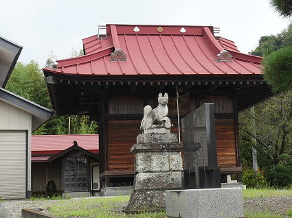 | 宝積寺稲荷神社 創建年代等は不詳ながら、江戸時代中期には社頭である。 加藤家の氏神であったことからそれ以前から鎮座していた。 江戸時代後期には伏見稲荷大社から改めて分霊を勧進し、 次第に村人から信仰されるようになった。 本殿は天保12年(1841)に建立され、各所に精巧な彫刻が施されていて町の文化財になっている。 |