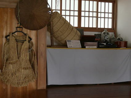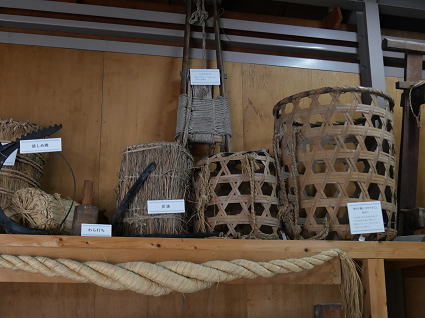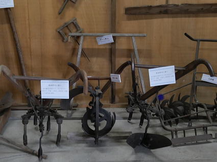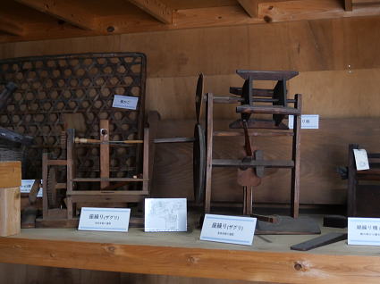 | 高根沢町歴史民俗資料館4 農具は稲作に係る道具を中心になっている。 そのほか、漁具や織物の道具など懐かしい品々が並ぶ。 失われつつある昔の道具が・・・ |