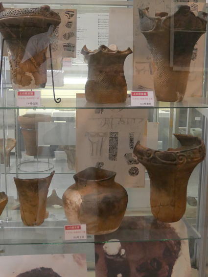 | 高根沢町歴史民俗資料館6 高根沢町では約1万年前に縄文時代の始まりと同じく、人が暮らし始めた。 縄文時代中期(4000年前)には上の原遺跡では竪穴住居が出土している。 弥生時代中期から後期にかけて五行川低地と喜連川丘陵の沢地に 弥生時代の遺跡が点在する。 |