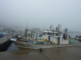 海の霞み 山も霞み 答志島もすっかり霧の中