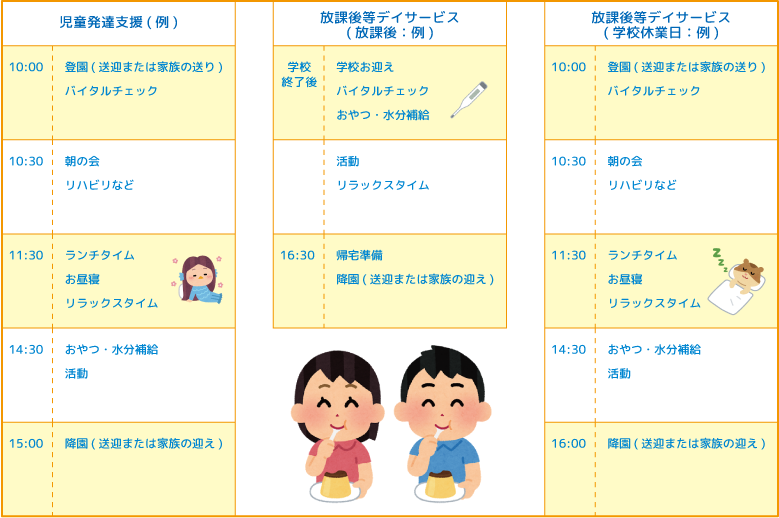 おこさんを対象に事業所に通所し、家庭ではない場所で家族以外の大人や同年代のお友達と共に